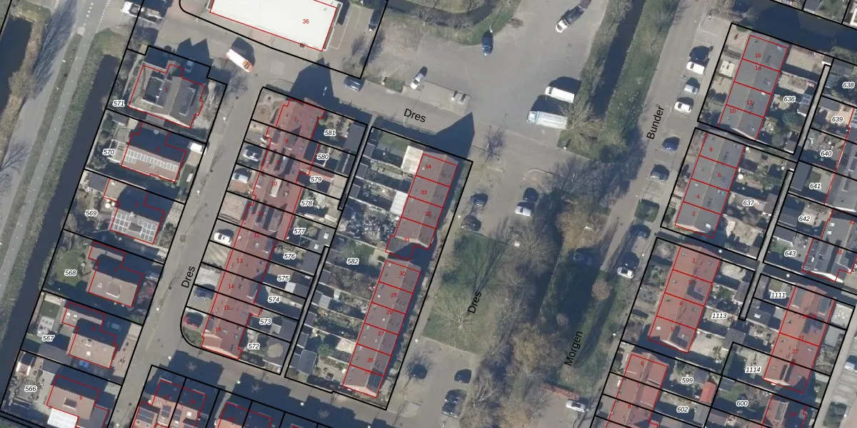 Het perceel waarop Dres 32 staat heeft een oppervlakte van 1529 m². Dit is een zeer groot perceel. De perceeloppervlakte wordt geregistreerd door het Kadaster. Gedetailleerde informatie over de maten van dit perceel kunt u vinden in het rapport Kadastrale kaart met maatvoering van Dres 32.