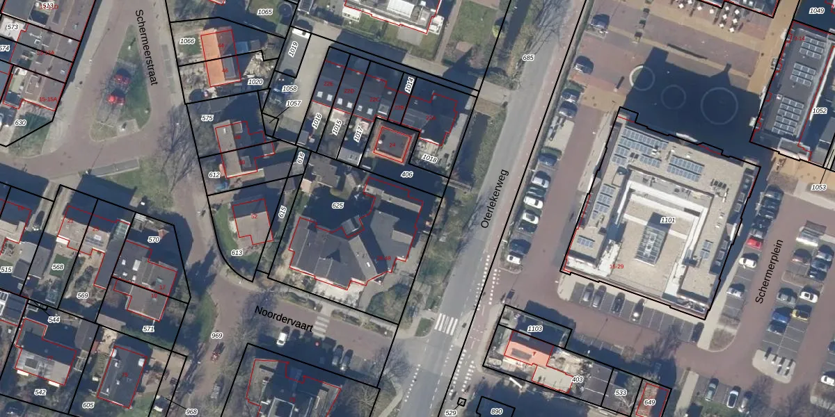 Oterlekerweg 36 is gelegen op kadastraal perceel SMR01O625. Deze kadastrale aanduiding is uniek en wordt gebruikt door het Kadaster om eigendomsrechten en andere zakelijke rechten vast te leggen. Het perceel maakt onderdeel uit van de kadastrale gemeente Schermer.