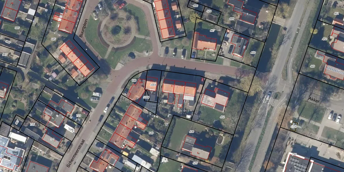 Het perceel waarop Schermeerstraat 8 staat heeft een oppervlakte van 1710 m². Dit is een zeer groot perceel. De perceeloppervlakte wordt geregistreerd door het Kadaster. Gedetailleerde informatie over de maten van dit perceel kunt u vinden in het rapport Kadastrale kaart met maatvoering van Schermeerstraat 8.
