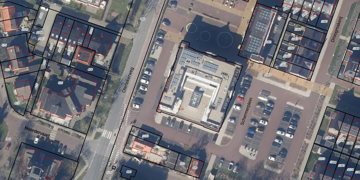 Het perceel waarop Schermerplein 21 staat heeft een oppervlakte van 1430 m². Dit is een zeer groot perceel. De perceeloppervlakte wordt geregistreerd door het Kadaster. Gedetailleerde informatie over de maten van dit perceel kunt u vinden in het rapport Kadastrale kaart met maatvoering van Schermerplein 21.