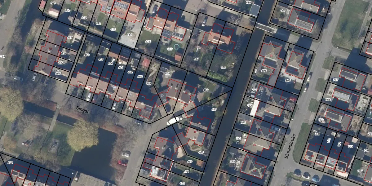 Het perceel waarop Singel 13 staat heeft een oppervlakte van 377 m². Dit is een groot perceel. De perceeloppervlakte wordt geregistreerd door het Kadaster. Gedetailleerde informatie over de maten van dit perceel kunt u vinden in het rapport Kadastrale kaart met maatvoering van Singel 13.