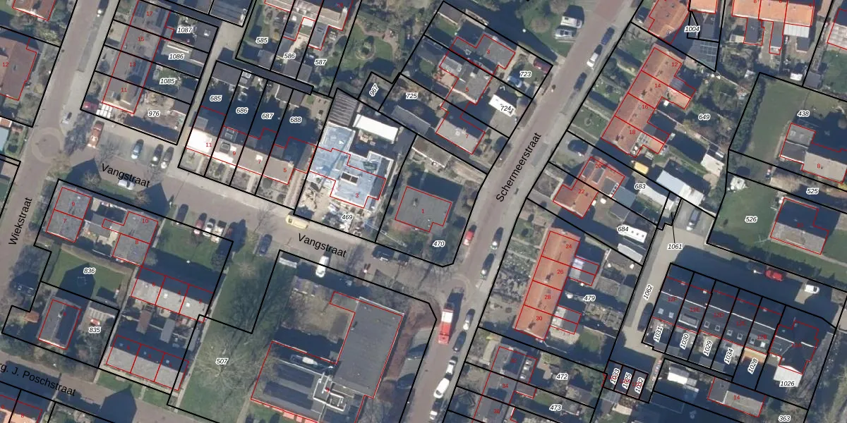 Gebruik de zoekbalk of klik op een perceel voor informatie over de adressen binnen dit perceel.
