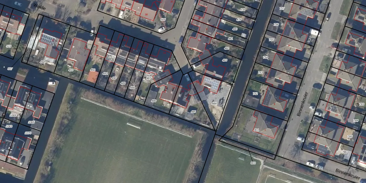 Het perceel waarop Weide 13 staat heeft een oppervlakte van 362 m². Dit is een groot perceel. De perceeloppervlakte wordt geregistreerd door het Kadaster. Gedetailleerde informatie over de maten van dit perceel kunt u vinden in het rapport Kadastrale kaart met maatvoering van Weide 13.