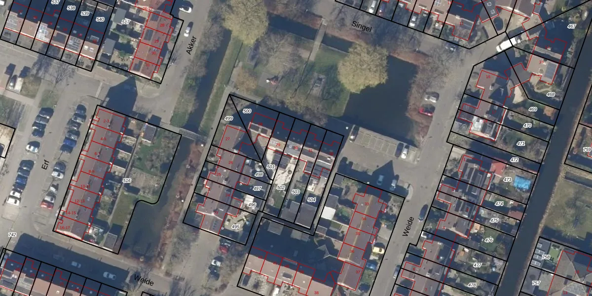Gebruik de zoekbalk of klik op een perceel voor informatie over de adressen binnen dit perceel.