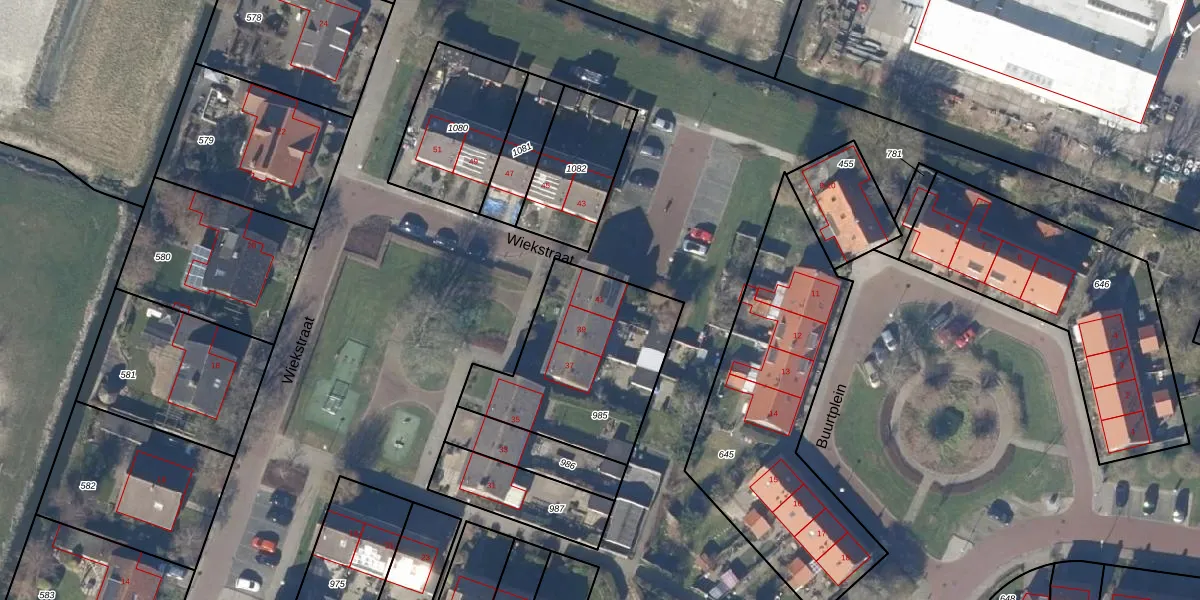 Het perceel waarop Wiekstraat 41 staat heeft een oppervlakte van 714 m². Dit is een groot perceel. De perceeloppervlakte wordt geregistreerd door het Kadaster. Gedetailleerde informatie over de maten van dit perceel kunt u vinden in het rapport Kadastrale kaart met maatvoering van Wiekstraat 41.