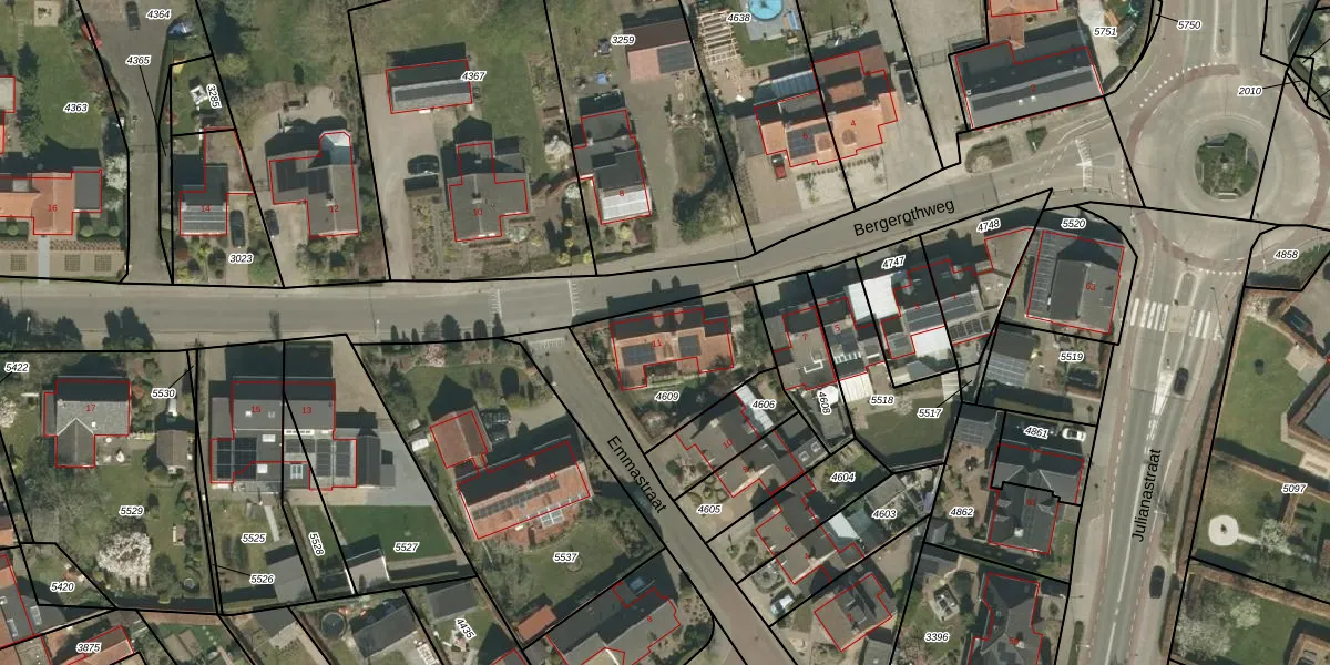 Gebruik de zoekbalk of klik op een perceel voor informatie over de adressen binnen dit perceel.