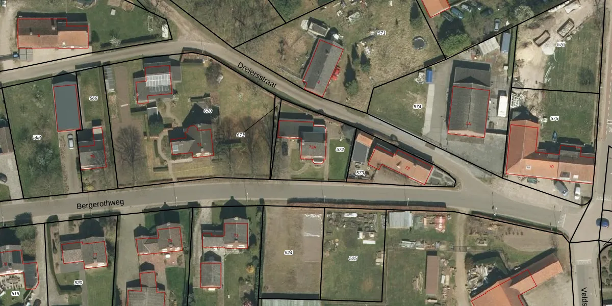 Bergerothweg 72-A is gelegen op kadastraal perceel SRY00G572. Deze kadastrale aanduiding is uniek en wordt gebruikt door het Kadaster om eigendomsrechten en andere zakelijke rechten vast te leggen. Het perceel maakt onderdeel uit van de kadastrale gemeente Stramproy.