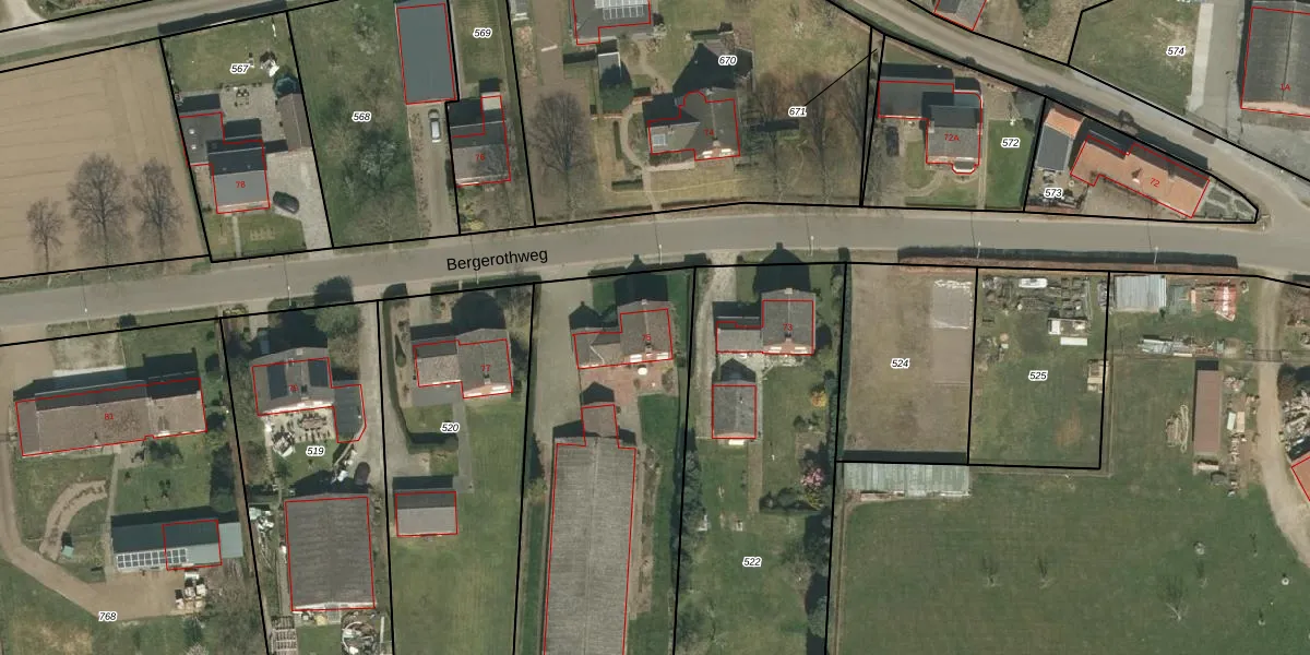 Bergerothweg 75 is gelegen op kadastraal perceel SRY00G521. Deze kadastrale aanduiding is uniek en wordt gebruikt door het Kadaster om eigendomsrechten en andere zakelijke rechten vast te leggen. Het perceel maakt onderdeel uit van de kadastrale gemeente Stramproy.