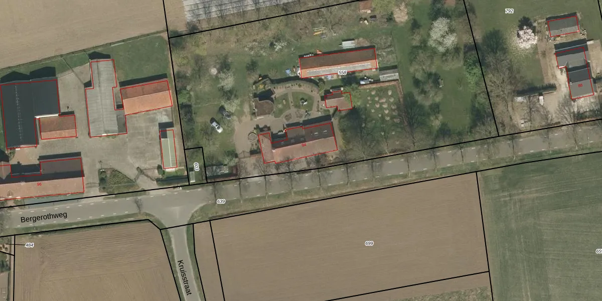 Bergerothweg 94 is gelegen op kadastraal perceel SRY00G558. Deze kadastrale aanduiding is uniek en wordt gebruikt door het Kadaster om eigendomsrechten en andere zakelijke rechten vast te leggen. Het perceel maakt onderdeel uit van de kadastrale gemeente Stramproy.