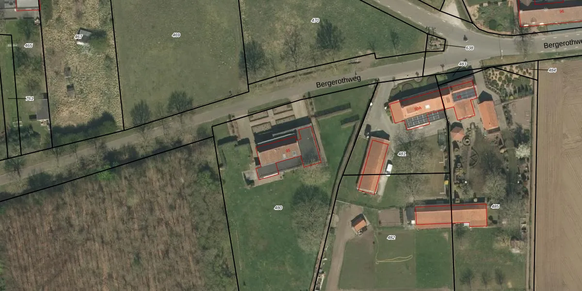 Bergerothweg 95 is gelegen op kadastraal perceel SRY00G480. Deze kadastrale aanduiding is uniek en wordt gebruikt door het Kadaster om eigendomsrechten en andere zakelijke rechten vast te leggen. Het perceel maakt onderdeel uit van de kadastrale gemeente Stramproy.