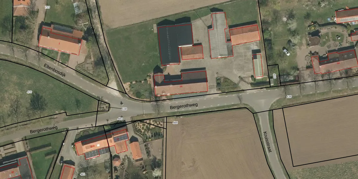 Bergerothweg 96 is gelegen op kadastraal perceel SRY00G556. Deze kadastrale aanduiding is uniek en wordt gebruikt door het Kadaster om eigendomsrechten en andere zakelijke rechten vast te leggen. Het perceel maakt onderdeel uit van de kadastrale gemeente Stramproy.
