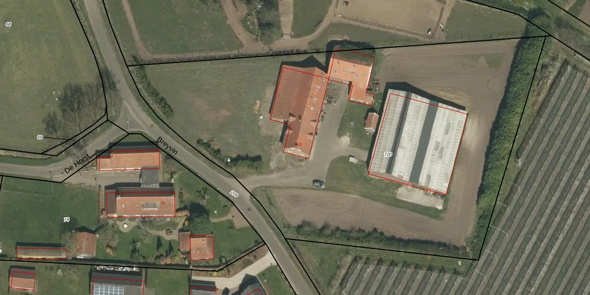 Breyvin 12 is gelegen op kadastraal perceel SRY00F720. Deze kadastrale aanduiding is uniek en wordt gebruikt door het Kadaster om eigendomsrechten en andere zakelijke rechten vast te leggen. Het perceel maakt onderdeel uit van de kadastrale gemeente Stramproy.