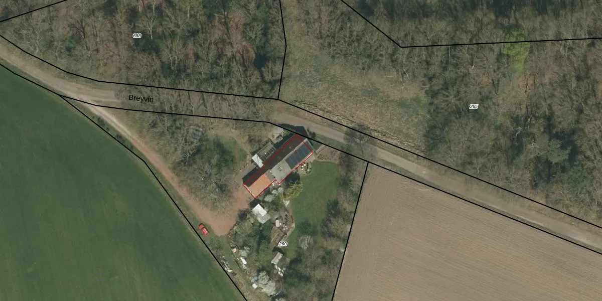 Het perceel waarop Breyvin 2 staat heeft een oppervlakte van 3775 m². Dit is een zeer groot perceel. De perceeloppervlakte wordt geregistreerd door het Kadaster. Gedetailleerde informatie over de maten van dit perceel kunt u vinden in het rapport Kadastrale kaart met maatvoering van Breyvin 2.