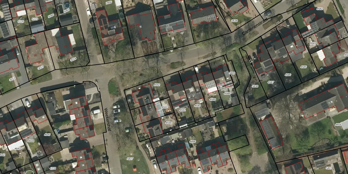 Carolinenstraat 15 is gelegen op kadastraal perceel SRY00D4591. Deze kadastrale aanduiding is uniek en wordt gebruikt door het Kadaster om eigendomsrechten en andere zakelijke rechten vast te leggen. Het perceel maakt onderdeel uit van de kadastrale gemeente Stramproy.