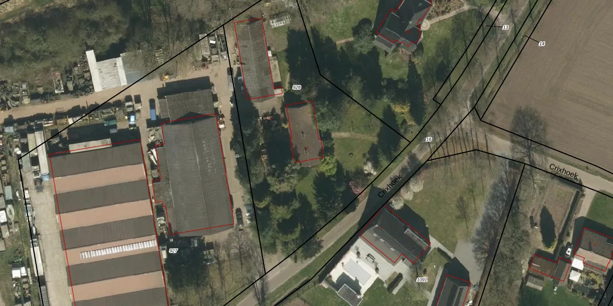 Het perceel waarop Crixhoek 5 staat heeft een oppervlakte van 2805 m². Dit is een zeer groot perceel. De perceeloppervlakte wordt geregistreerd door het Kadaster. Gedetailleerde informatie over de maten van dit perceel kunt u vinden in het rapport Kadastrale kaart met maatvoering van Crixhoek 5.