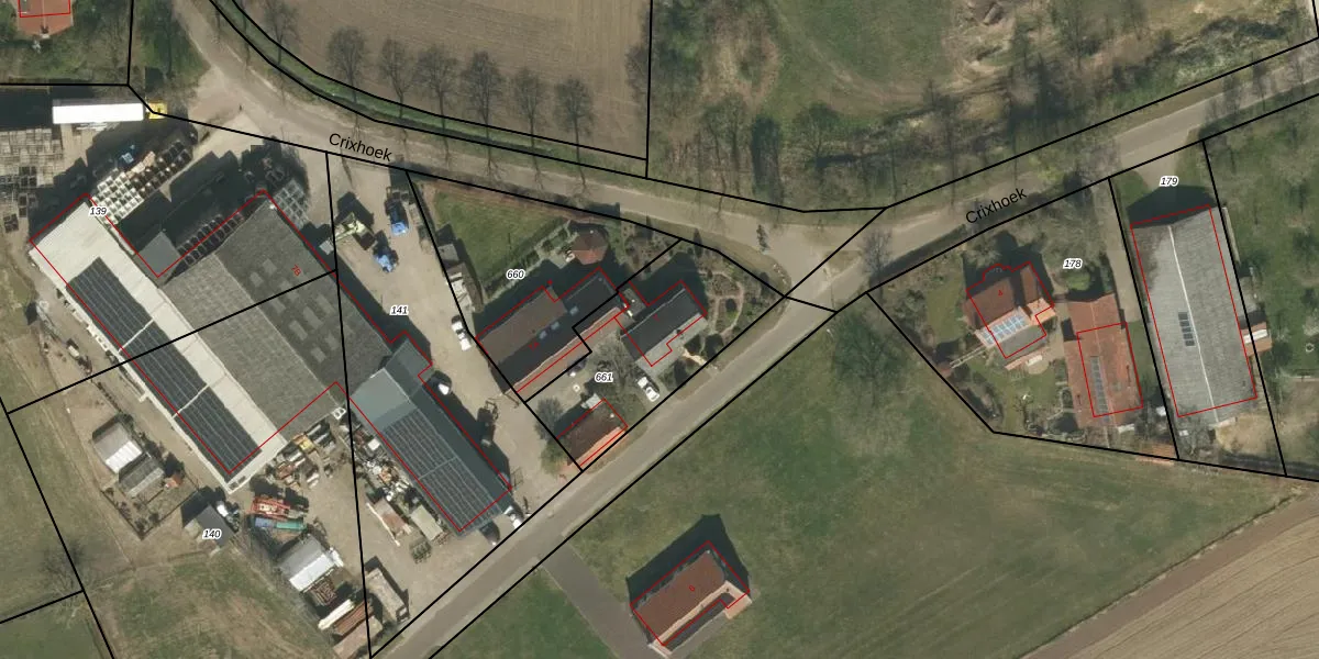 Crixhoek 7 is gelegen op kadastraal perceel SRY00G661. Deze kadastrale aanduiding is uniek en wordt gebruikt door het Kadaster om eigendomsrechten en andere zakelijke rechten vast te leggen. Het perceel maakt onderdeel uit van de kadastrale gemeente Stramproy.