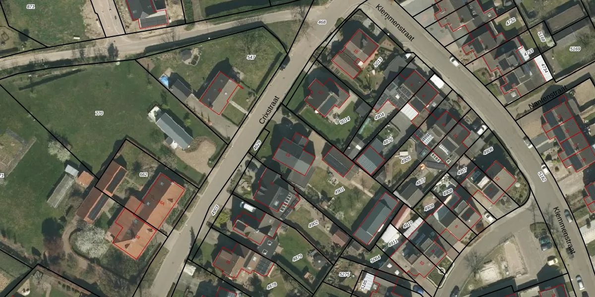 Crixstraat 19 is gelegen op kadastraal perceel SRY00D4901. Deze kadastrale aanduiding is uniek en wordt gebruikt door het Kadaster om eigendomsrechten en andere zakelijke rechten vast te leggen. Het perceel maakt onderdeel uit van de kadastrale gemeente Stramproy.
