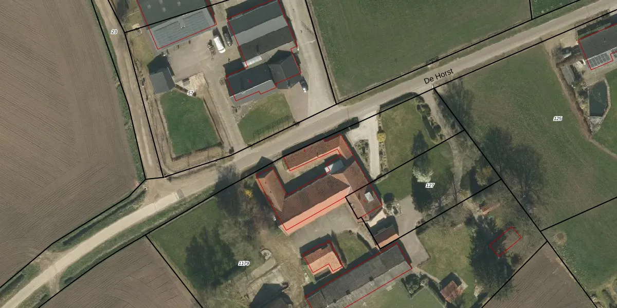 Het perceel waarop De Horst 4 staat heeft een oppervlakte van 7270 m². Dit is een zeer groot perceel. De perceeloppervlakte wordt geregistreerd door het Kadaster. Gedetailleerde informatie over de maten van dit perceel kunt u vinden in het rapport Kadastrale kaart met maatvoering van De Horst 4.
