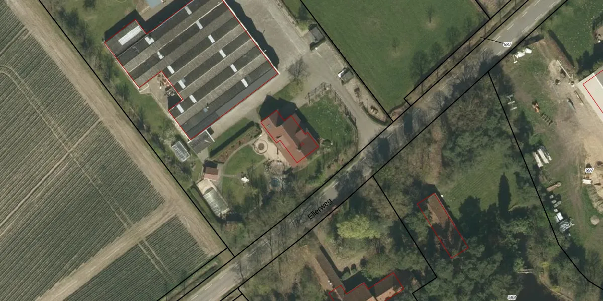 Het perceel waarop Ellerweg 11 staat heeft een oppervlakte van 8048 m². Dit is een zeer groot perceel. De perceeloppervlakte wordt geregistreerd door het Kadaster. Gedetailleerde informatie over de maten van dit perceel kunt u vinden in het rapport Kadastrale kaart met maatvoering van Ellerweg 11.
