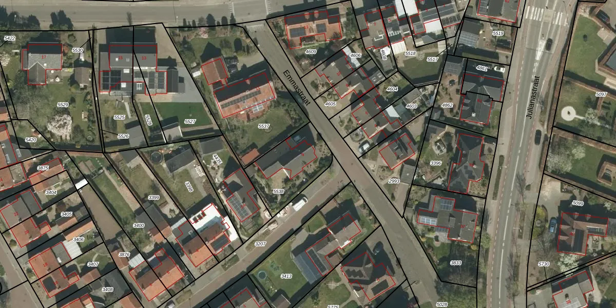 Emmastraat 9 is gelegen op kadastraal perceel SRY00D5538. Deze kadastrale aanduiding is uniek en wordt gebruikt door het Kadaster om eigendomsrechten en andere zakelijke rechten vast te leggen. Het perceel maakt onderdeel uit van de kadastrale gemeente Stramproy.