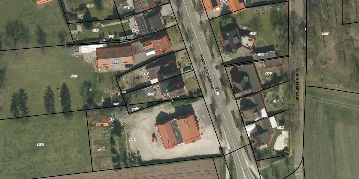 Frans Strouxstraat 30 is gelegen op kadastraal perceel SRY00D4745. Deze kadastrale aanduiding is uniek en wordt gebruikt door het Kadaster om eigendomsrechten en andere zakelijke rechten vast te leggen. Het perceel maakt onderdeel uit van de kadastrale gemeente Stramproy.