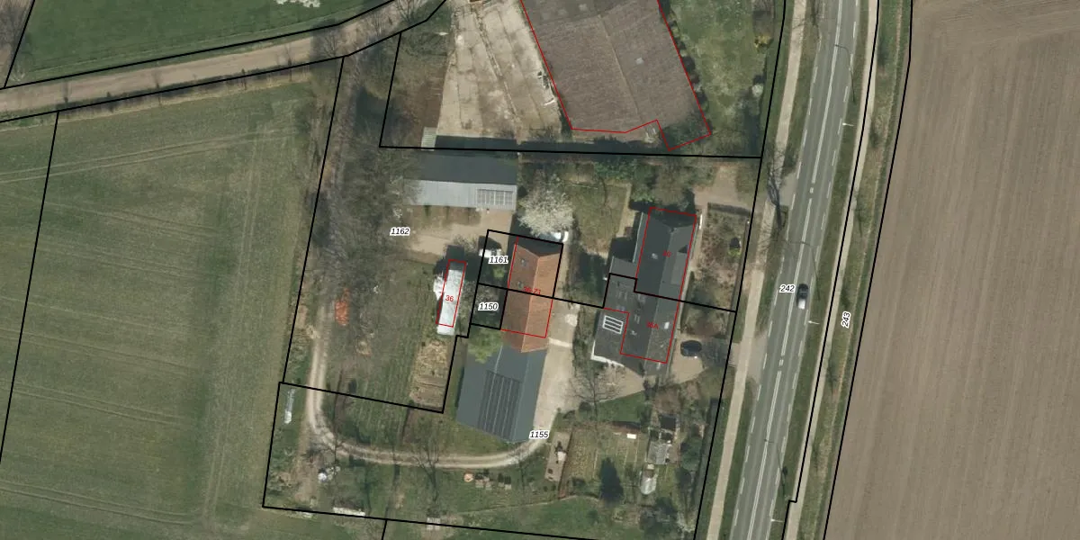 Het adres is gelegen op perceel 1161 in de sectie F en de kadastrale gemeente Stramproy. De kadastrale aanduiding is aldus SRY00-F-1161. De gemiddelde perceelgrootte in Stramproy is 3051,39 m². Dit perceel is kleiner: de perceeloppervlakte bedraagt 143 m². Het kleinste perceel in de kadastrale gemeente is 0 m² groot. De grootste perceeloppervlakte is 12,0 ha. Er zijn geen andere adressen aanwezig op het perceel. De laatste wijziging in het de Basisregistratie Kadaster (BRK) was op 26-10-2023.