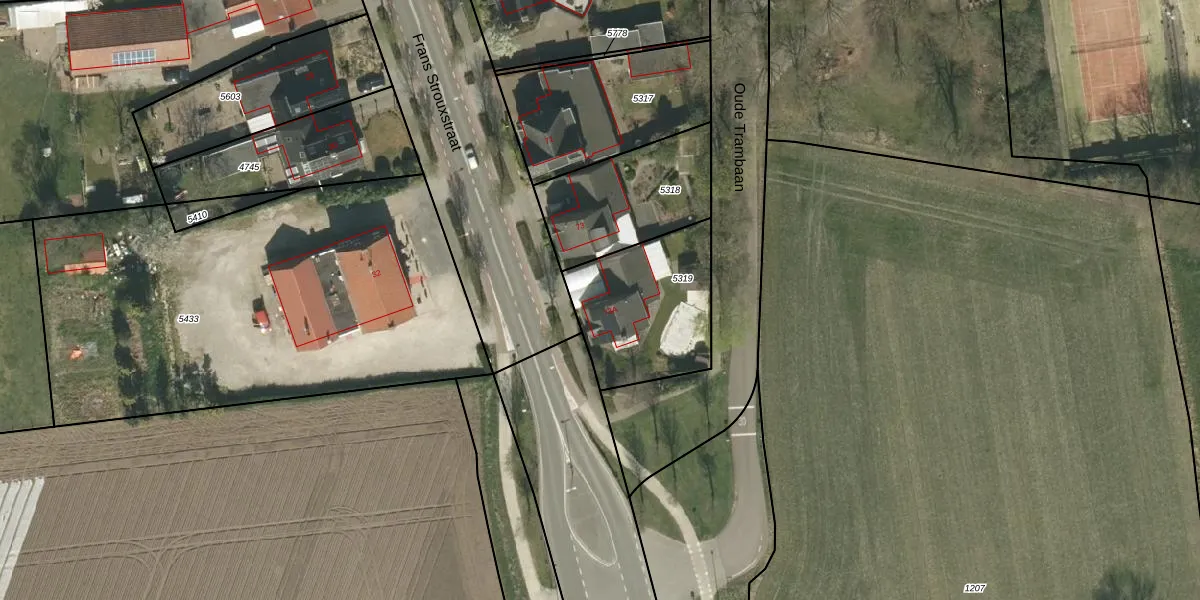Frans Strouxstraat 73-A is gelegen op kadastraal perceel SRY00D5319. Deze kadastrale aanduiding is uniek en wordt gebruikt door het Kadaster om eigendomsrechten en andere zakelijke rechten vast te leggen. Het perceel maakt onderdeel uit van de kadastrale gemeente Stramproy.
