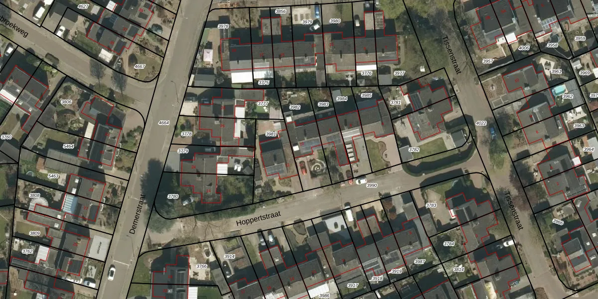 Gebruik de zoekbalk of klik op een perceel voor informatie over de adressen binnen dit perceel.