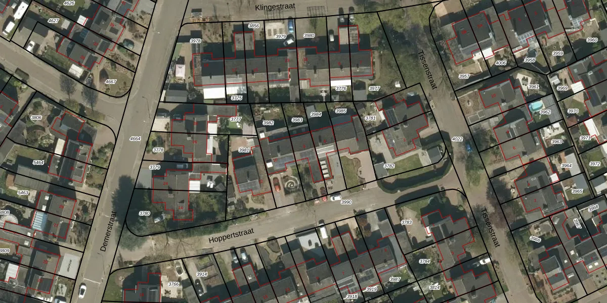 Gebruik de zoekbalk of klik op een perceel voor informatie over de adressen binnen dit perceel.