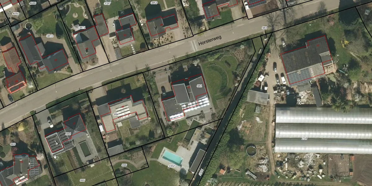 Horsterweg 43 is gelegen op kadastraal perceel SRY00F981. Deze kadastrale aanduiding is uniek en wordt gebruikt door het Kadaster om eigendomsrechten en andere zakelijke rechten vast te leggen. Het perceel maakt onderdeel uit van de kadastrale gemeente Stramproy.