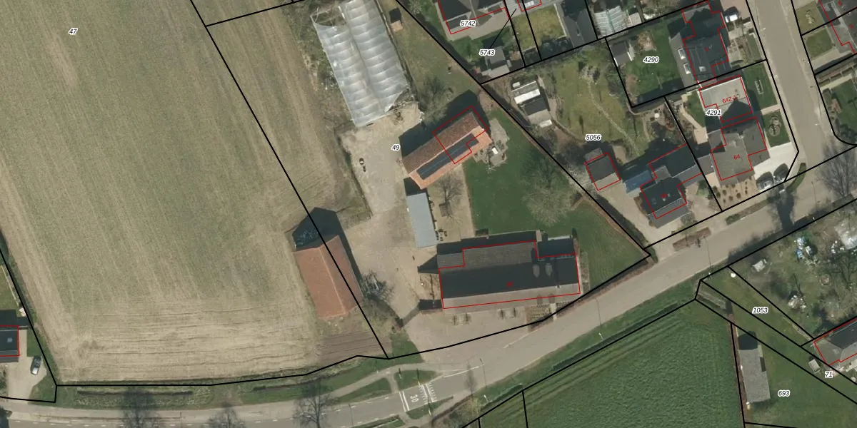 Het adres is gelegen op perceel 49 in de sectie F en de kadastrale gemeente Stramproy. De kadastrale aanduiding is aldus SRY00-F-49. Het perceel is met 4684 m² relatief groot. Het gemiddelde ligt in de kadastrale gemeente Stramproy op 3051,39 m². Het grootste perceel in de kadastrale gemeente is 12,0 ha. Het kleinste perceel heeft een oppervlakte van 0 m². Er zijn 2 adressen aanwezig op het perceel. In de Basisregistratie Kadaster (BRK) werden de grenzen van het perceel geregistreerd op 03-02-2012.