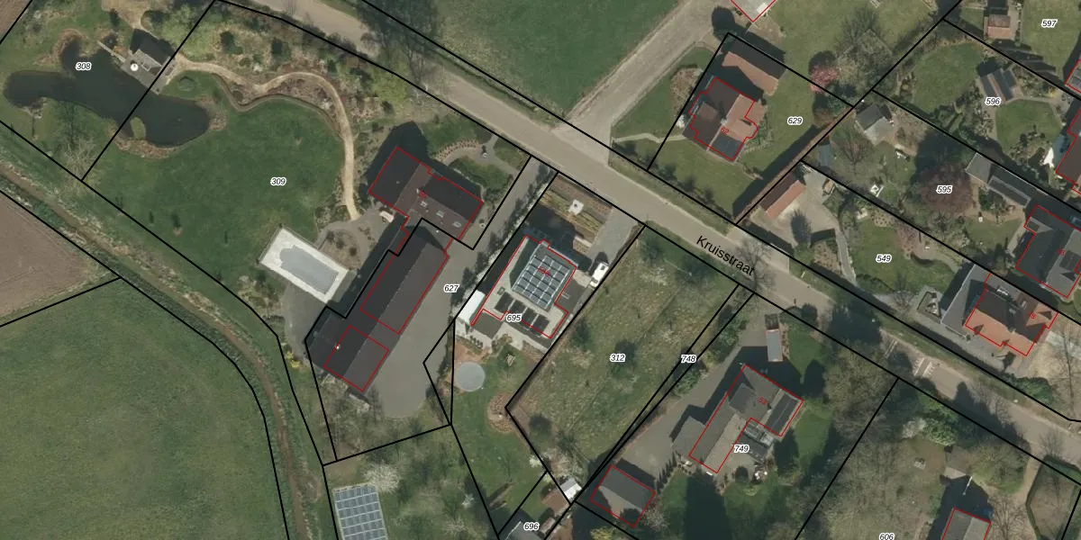 Kruisstraat 53-B is gelegen op kadastraal perceel SRY00G695. Deze kadastrale aanduiding is uniek en wordt gebruikt door het Kadaster om eigendomsrechten en andere zakelijke rechten vast te leggen. Het perceel maakt onderdeel uit van de kadastrale gemeente Stramproy.