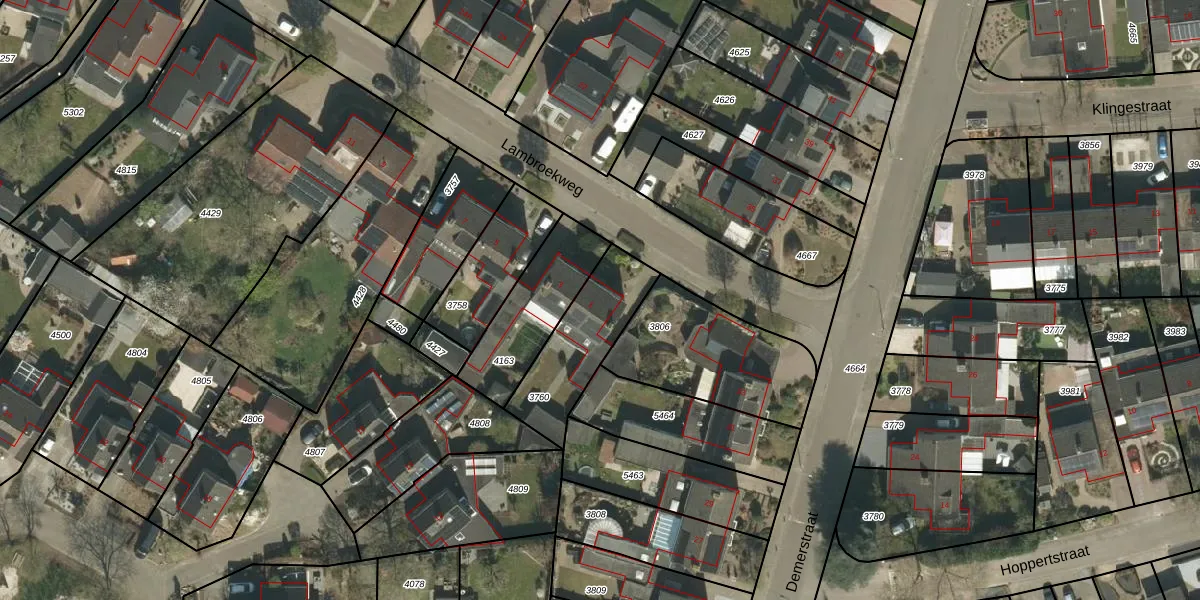 Het perceel waarop Lambroekweg 1 staat heeft een oppervlakte van 320 m². Dit is een groot perceel. De perceeloppervlakte wordt geregistreerd door het Kadaster. Gedetailleerde informatie over de maten van dit perceel kunt u vinden in het rapport Kadastrale kaart met maatvoering van Lambroekweg 1.