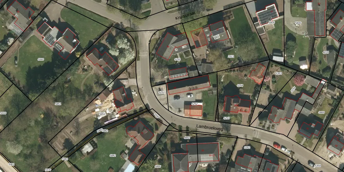 Lambroekweg 34 is gelegen op kadastraal perceel SRY00D5252. Deze kadastrale aanduiding is uniek en wordt gebruikt door het Kadaster om eigendomsrechten en andere zakelijke rechten vast te leggen. Het perceel maakt onderdeel uit van de kadastrale gemeente Stramproy.