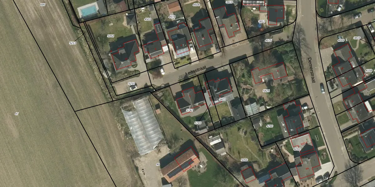 Het perceel waarop Leitsstraat 3 staat heeft een oppervlakte van 565 m². Dit is een groot perceel. De perceeloppervlakte wordt geregistreerd door het Kadaster. Gedetailleerde informatie over de maten van dit perceel kunt u vinden in het rapport Kadastrale kaart met maatvoering van Leitsstraat 3.