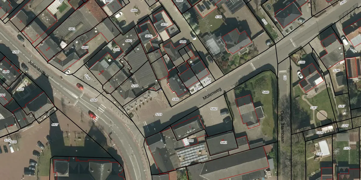 Het perceel waarop Molenweg 1 staat heeft een oppervlakte van 322 m². Dit is een groot perceel. De perceeloppervlakte wordt geregistreerd door het Kadaster. Gedetailleerde informatie over de maten van dit perceel kunt u vinden in het rapport Kadastrale kaart met maatvoering van Molenweg 1.