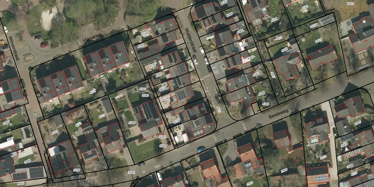 Mulderstraat 5 is gelegen op kadastraal perceel SRY00D4196. Deze kadastrale aanduiding is uniek en wordt gebruikt door het Kadaster om eigendomsrechten en andere zakelijke rechten vast te leggen. Het perceel maakt onderdeel uit van de kadastrale gemeente Stramproy.