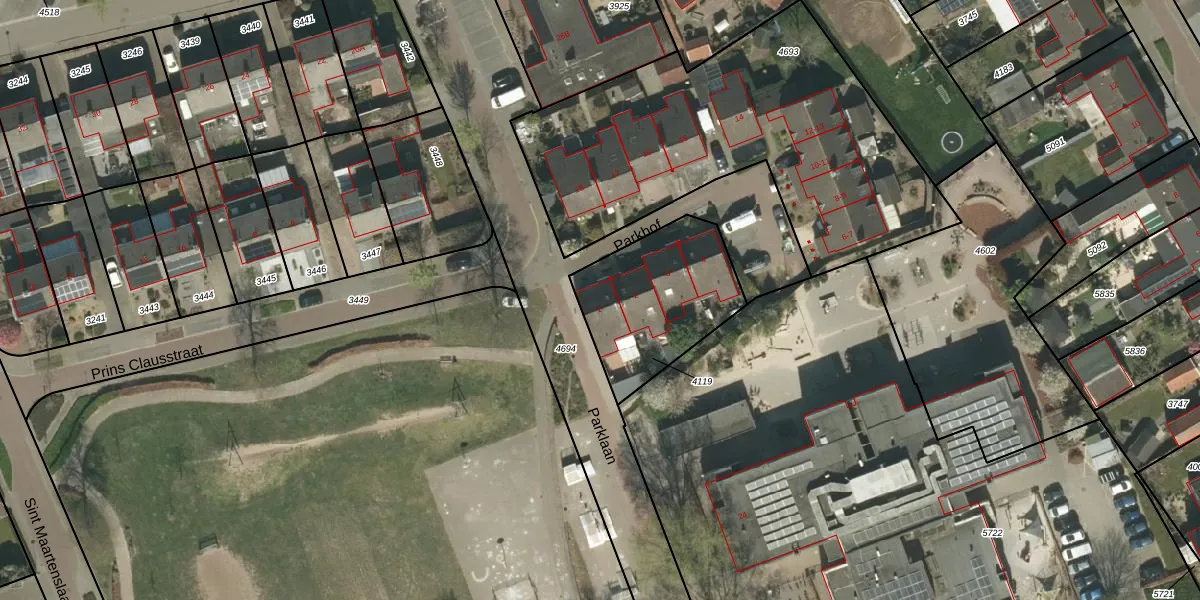 Het perceel waarop Parkhof 1 staat heeft een oppervlakte van 540 m². Dit is een groot perceel. De perceeloppervlakte wordt geregistreerd door het Kadaster. Gedetailleerde informatie over de maten van dit perceel kunt u vinden in het rapport Kadastrale kaart met maatvoering van Parkhof 1.