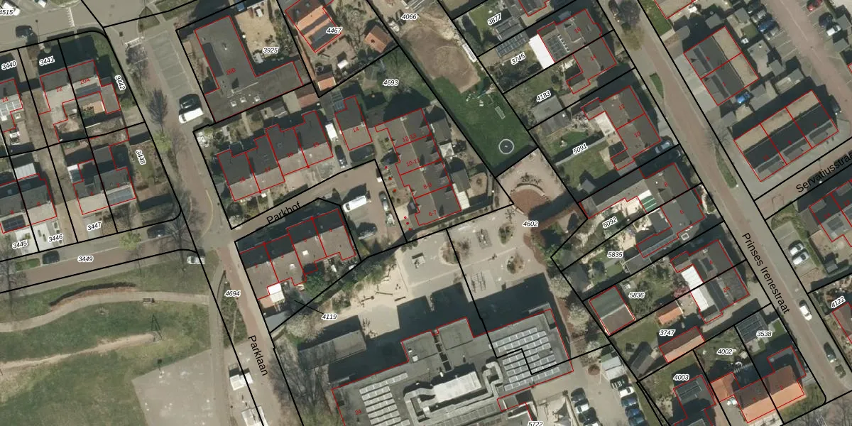 Het perceel waarop Parkhof 6 staat heeft een oppervlakte van 1740 m². Dit is een zeer groot perceel. De perceeloppervlakte wordt geregistreerd door het Kadaster. Gedetailleerde informatie over de maten van dit perceel kunt u vinden in het rapport Kadastrale kaart met maatvoering van Parkhof 6.