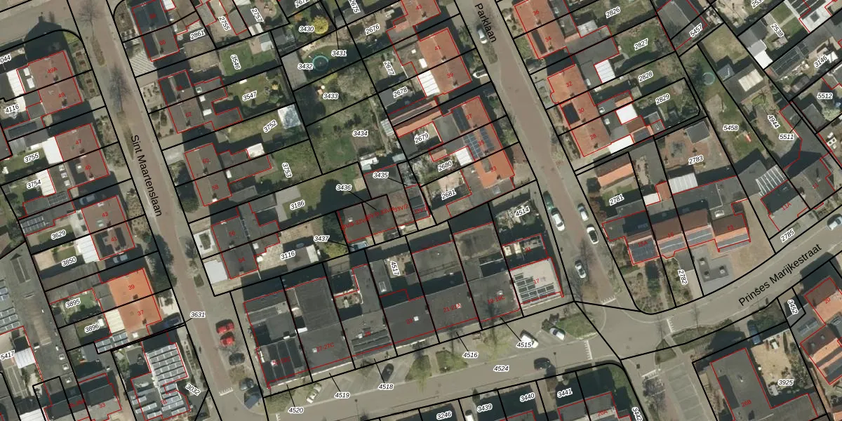 Parklaan 33-V-1 is gelegen op kadastraal perceel SRY00D3435. Deze kadastrale aanduiding is uniek en wordt gebruikt door het Kadaster om eigendomsrechten en andere zakelijke rechten vast te leggen. Het perceel maakt onderdeel uit van de kadastrale gemeente Stramproy.
