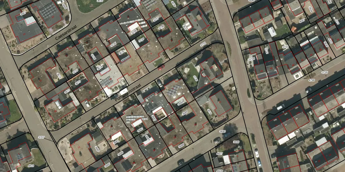 Gebruik de zoekbalk of klik op een perceel voor informatie over de adressen binnen dit perceel.