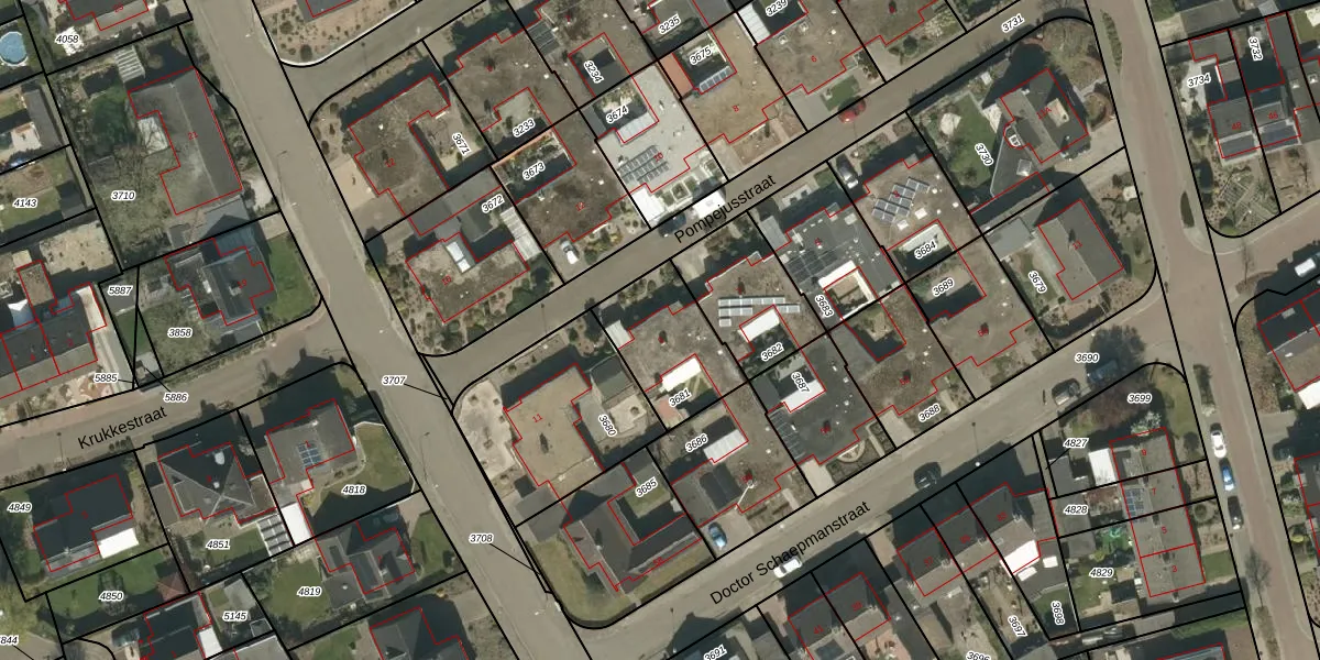 Pompejusstraat 9 is gelegen op kadastraal perceel SRY00D3681. Deze kadastrale aanduiding is uniek en wordt gebruikt door het Kadaster om eigendomsrechten en andere zakelijke rechten vast te leggen. Het perceel maakt onderdeel uit van de kadastrale gemeente Stramproy.