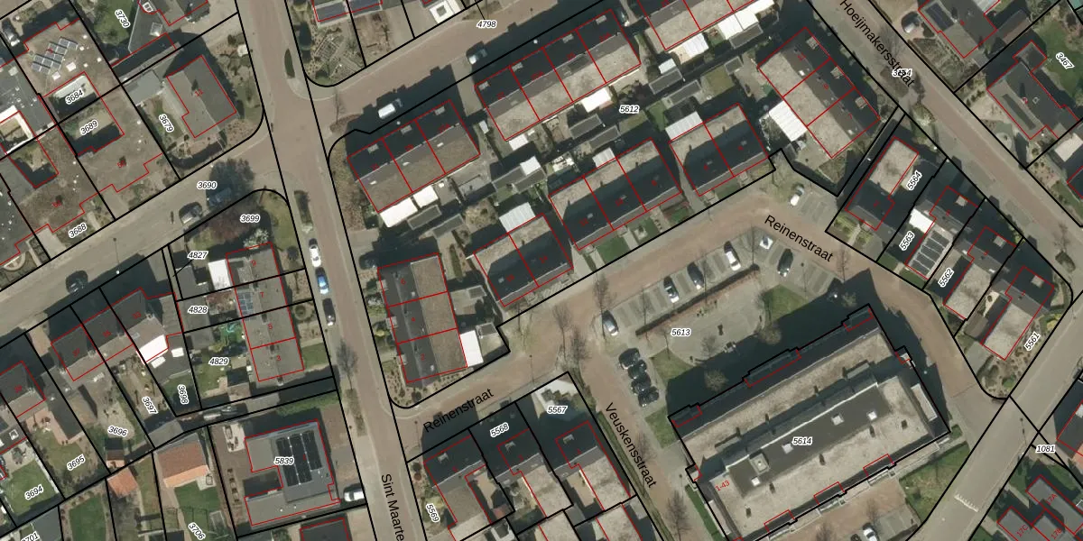 Reinenstraat 14 is gelegen op kadastraal perceel SRY00D5612. Deze kadastrale aanduiding is uniek en wordt gebruikt door het Kadaster om eigendomsrechten en andere zakelijke rechten vast te leggen. Het perceel maakt onderdeel uit van de kadastrale gemeente Stramproy.