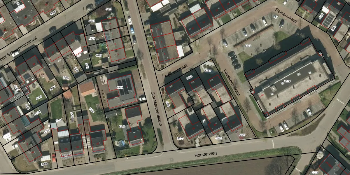 Reinenstraat 5 is gelegen op kadastraal perceel SRY00D5569. Deze kadastrale aanduiding is uniek en wordt gebruikt door het Kadaster om eigendomsrechten en andere zakelijke rechten vast te leggen. Het perceel maakt onderdeel uit van de kadastrale gemeente Stramproy.
