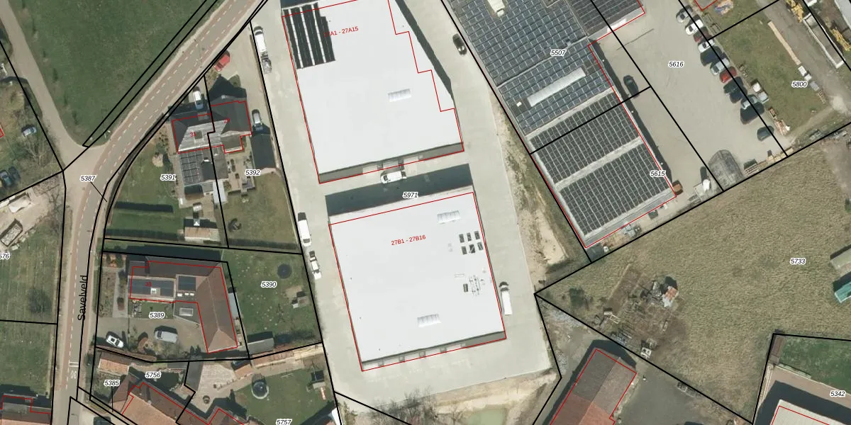 Savelveld 27-B-16 is gelegen op kadastraal perceel SRY00D5971. Deze kadastrale aanduiding is uniek en wordt gebruikt door het Kadaster om eigendomsrechten en andere zakelijke rechten vast te leggen. Het perceel maakt onderdeel uit van de kadastrale gemeente Stramproy.