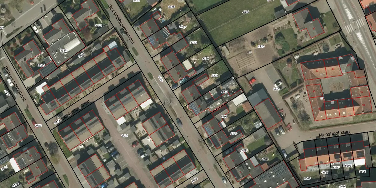 Sint Willibrordusstraat 16 is gelegen op kadastraal perceel SRY00D4328. Deze kadastrale aanduiding is uniek en wordt gebruikt door het Kadaster om eigendomsrechten en andere zakelijke rechten vast te leggen. Het perceel maakt onderdeel uit van de kadastrale gemeente Stramproy.