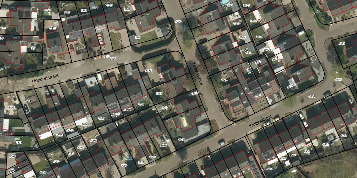 Het perceel waarop Tissenstraat 3 staat heeft een oppervlakte van 249 m². Dit is een middelgroot perceel. De perceeloppervlakte wordt geregistreerd door het Kadaster. Gedetailleerde informatie over de maten van dit perceel kunt u vinden in het rapport Kadastrale kaart met maatvoering van Tissenstraat 3.