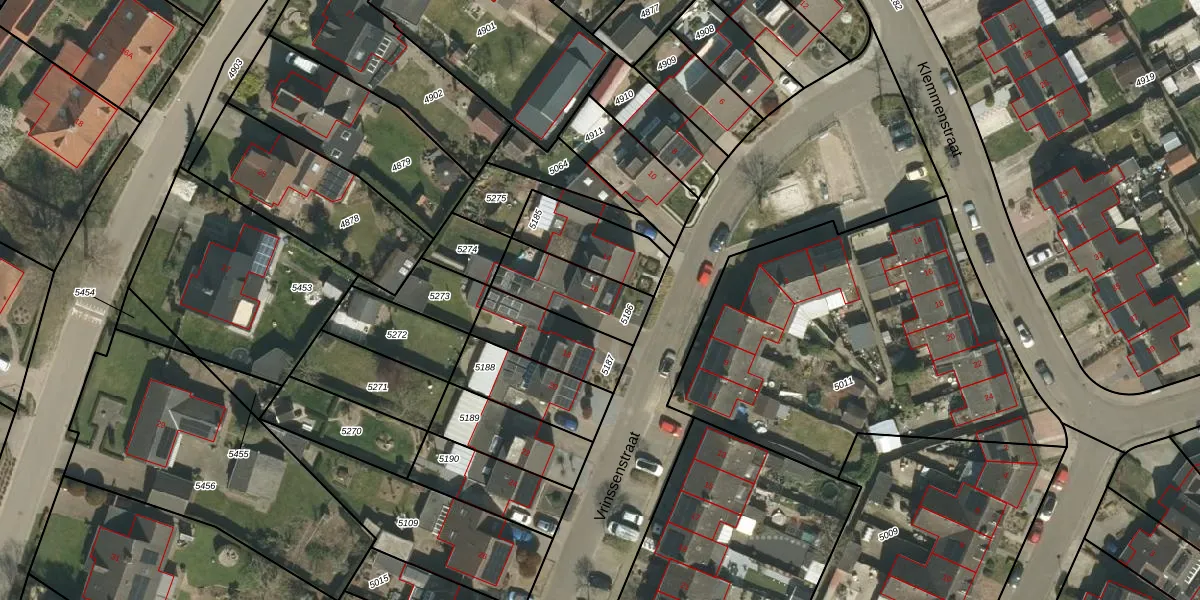 Vrinssenstraat 16 is gelegen op kadastraal perceel SRY00D5186. Deze kadastrale aanduiding is uniek en wordt gebruikt door het Kadaster om eigendomsrechten en andere zakelijke rechten vast te leggen. Het perceel maakt onderdeel uit van de kadastrale gemeente Stramproy.