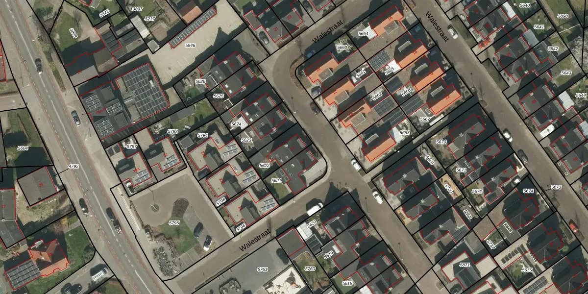 Het perceel waarop Walestraat 11 staat heeft een oppervlakte van 185 m². Dit is een middelgroot perceel. De perceeloppervlakte wordt geregistreerd door het Kadaster. Gedetailleerde informatie over de maten van dit perceel kunt u vinden in het rapport Kadastrale kaart met maatvoering van Walestraat 11.