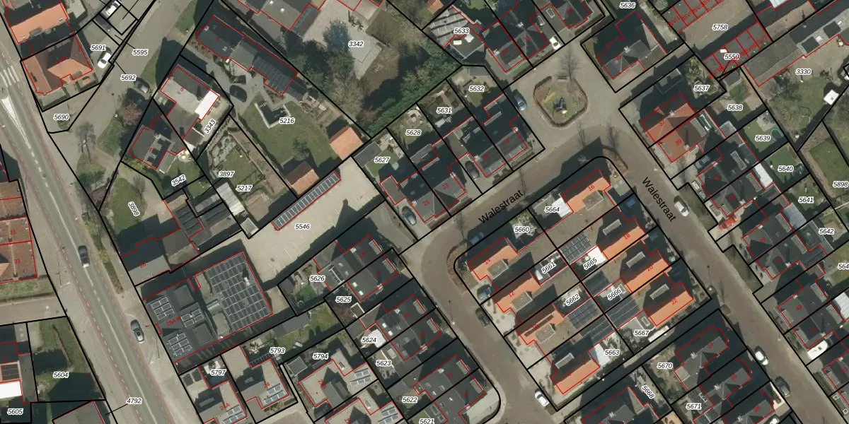 Walestraat 21 is gelegen op kadastraal perceel SRY00D5627. Deze kadastrale aanduiding is uniek en wordt gebruikt door het Kadaster om eigendomsrechten en andere zakelijke rechten vast te leggen. Het perceel maakt onderdeel uit van de kadastrale gemeente Stramproy.